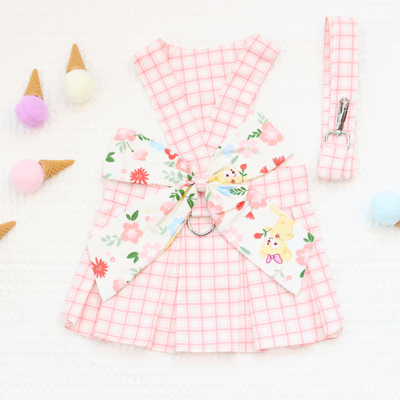 Pet clothes Dog chest back traction rope Teddy cat clothes Pet clothes Plaid plaid chest back skirt