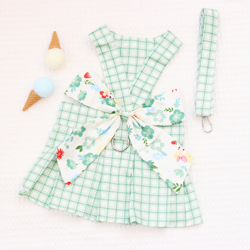 Home > Pet clothes Dog chest back traction rope Teddy cat clothes Pet clothes Plaid plaid chest back skirt