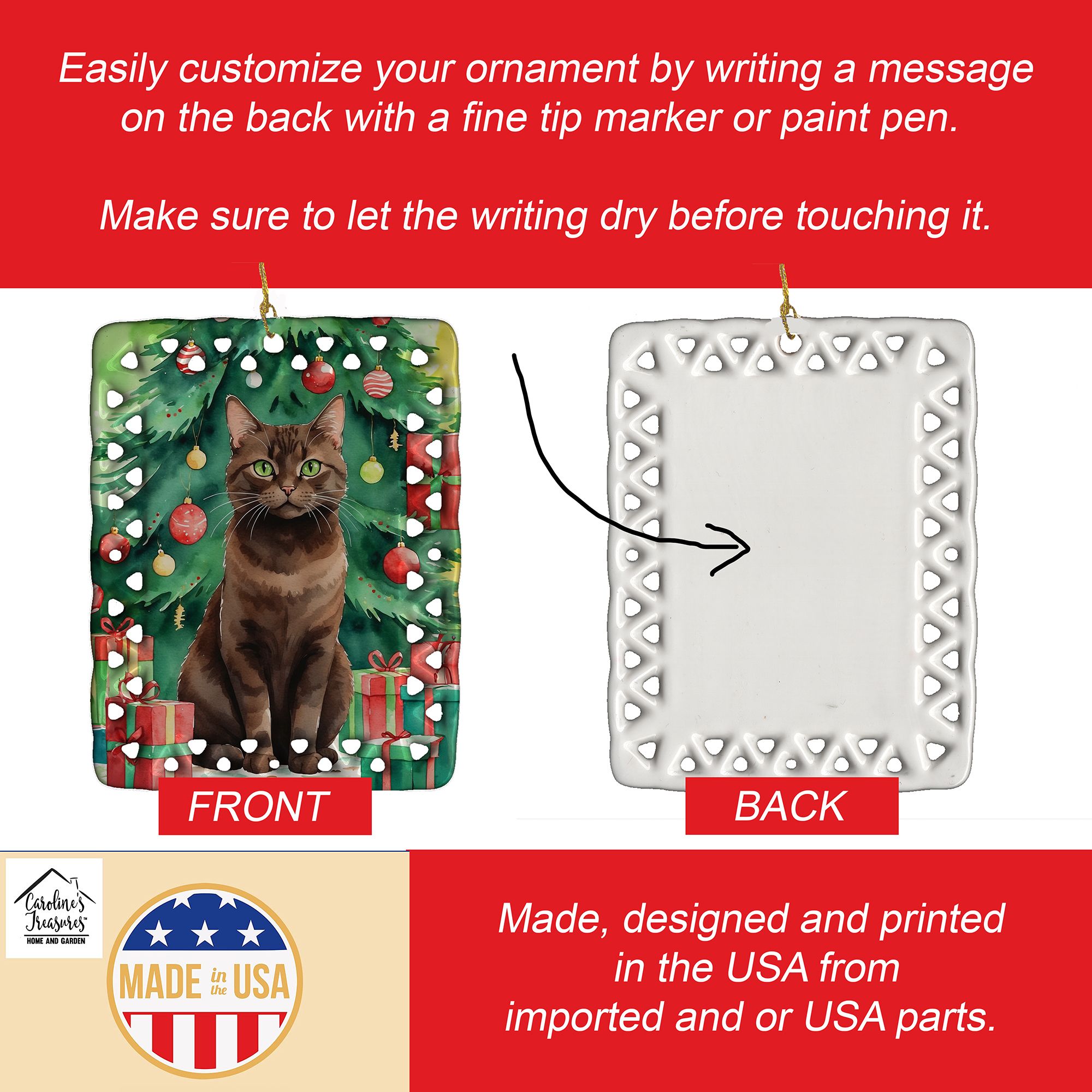 Porcelain Ornament featuring breed specific York Chocolate artwork. Celebrate Christmas with this Christmas Ornament. Add a unique, personal touch to your holiday decor with our Rectangular Lattice Porcelain Ornament. Perfect for creating cherished memories, this high-quality ornament shines under festive lights, reflecting warmth and joy throughout your Christmas tree. Crafted with a glossy finish, it showcases vibrant, full-color artwork contributed by our talented artists, ensuring your tree is adorned with a burst of color and holiday spirit. What sets this Porcelain Ornament apart is its customizable white back. Use a paint pen or permanent marker to write a heartfelt message, commemorate a special year, or mark an unforgettable date, turning this ornament into a keepsake that will be treasured for years to come. For best results, allow any personalization to dry thoroughly before handling. Each ornament comes complete with a delicate gold cord, making it easy to hang and display. Proudly made in the USA, this ornament measures 3.375 x 2.625 inches and is a thoughtful gift for pet sitters, teachers, family members, or anyone who would appreciate a little extra holiday magic. Bring style, charm, and a touch of personal meaning to your Christmas tree with this beautifully designed ornament..