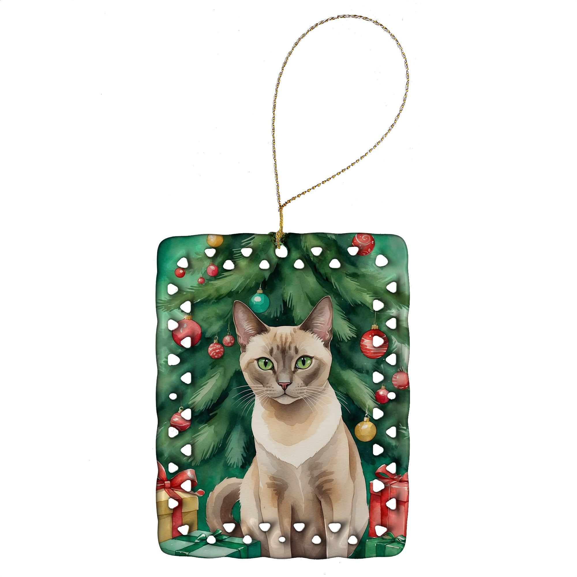 Porcelain Ornament featuring breed specific Tonkinese artwork. Celebrate Christmas with this Christmas Ornament. Add a unique, personal touch to your holiday decor with our Rectangular Lattice Porcelain Ornament. Perfect for creating cherished memories, this high-quality ornament shines under festive lights, reflecting warmth and joy throughout your Christmas tree. Crafted with a glossy finish, it showcases vibrant, full-color artwork contributed by our talented artists, ensuring your tree is adorned with a burst of color and holiday spirit. What sets this Porcelain Ornament apart is its customizable white back. Use a paint pen or permanent marker to write a heartfelt message, commemorate a special year, or mark an unforgettable date, turning this ornament into a keepsake that will be treasured for years to come. For best results, allow any personalization to dry thoroughly before handling. Each ornament comes complete with a delicate gold cord, making it easy to hang and display. Proudly made in the USA, this ornament measures 3.375 x 2.625 inches and is a thoughtful gift for pet sitters, teachers, family members, or anyone who would appreciate a little extra holiday magic. Bring style, charm, and a touch of personal meaning to your Christmas tree with this beautifully designed ornament..