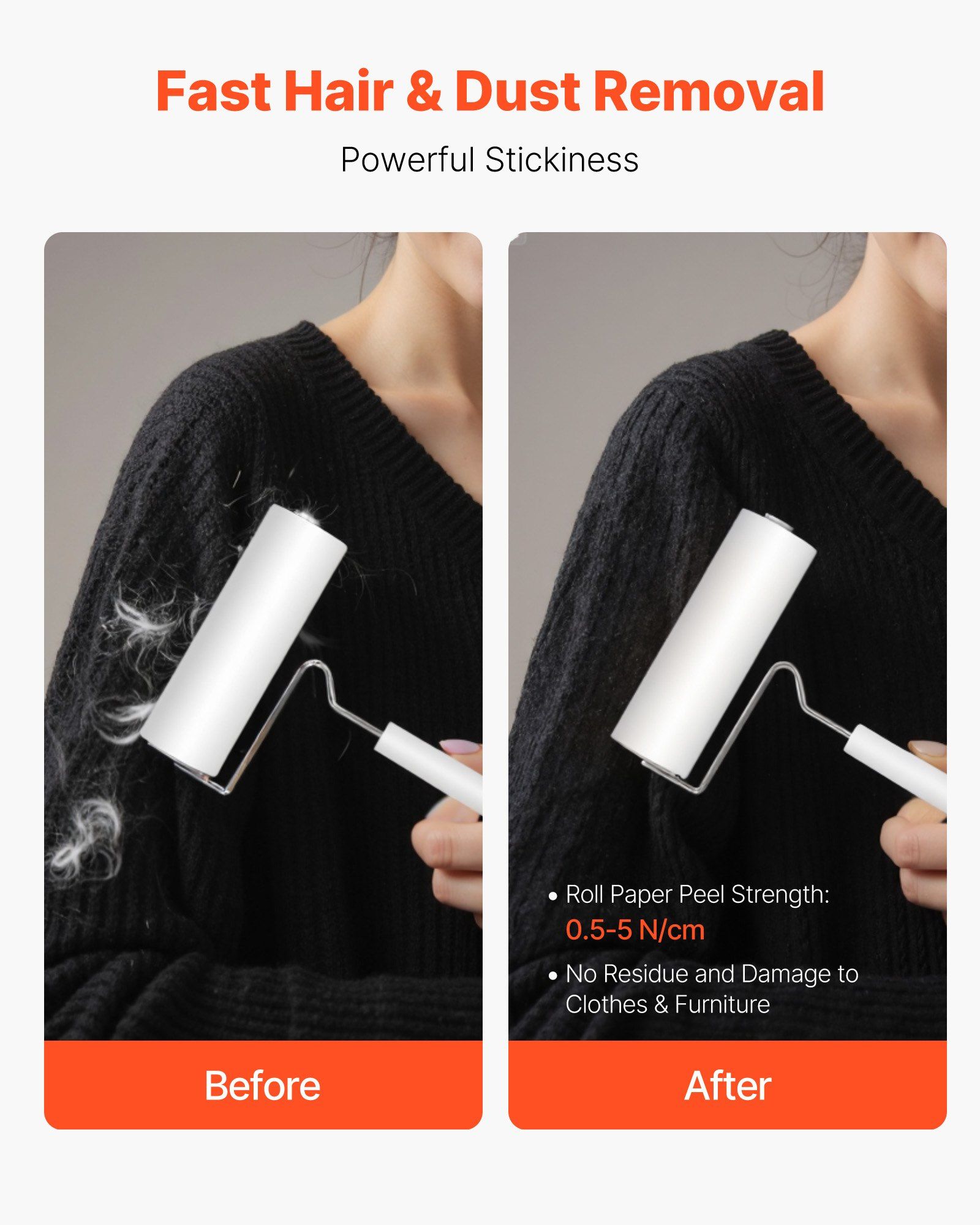 2.Efficient Cleaning: Each roll spans an area of 6.30 in / 160 mm, saving time and making cleaning faster. Ideal for quickly cleaning large areas of furniture or clothing, it improves cleaning efficiency, leaving your home hair-free, clean, and refreshed